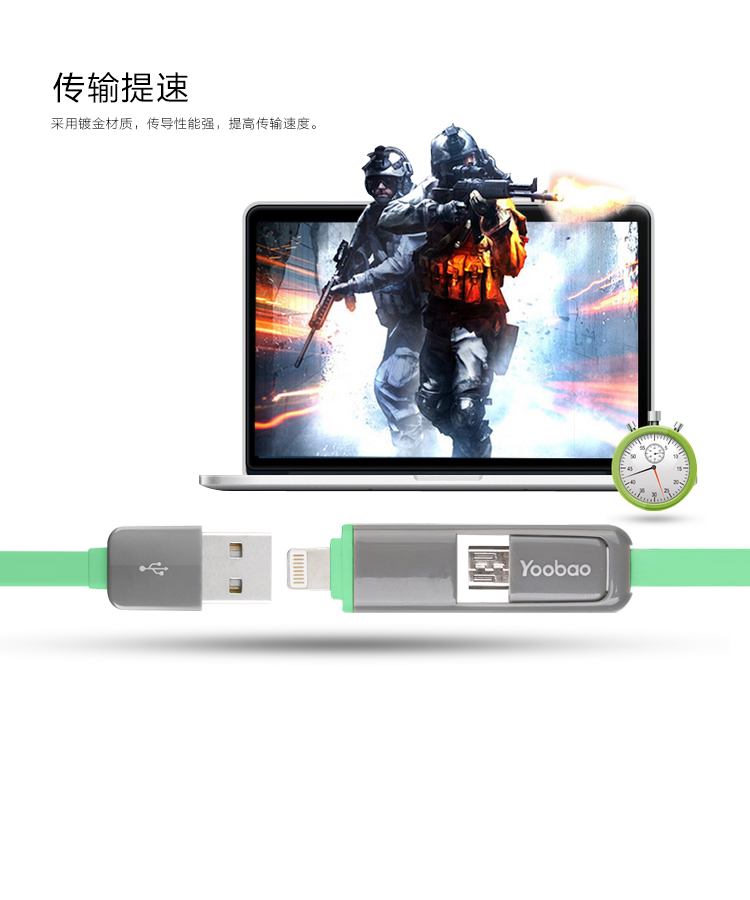 羽博(Yoobao) 苹果安卓通用二合一体手机充电数据线 80cm 白色